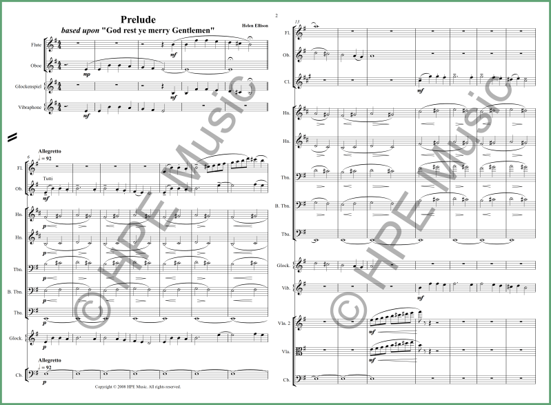 Instrumentation: Flute, Oboe, Clarinet in Bflat, Horns 1 & 2 in F, Trumpet in Bflat, Tenor Trombone, Bass Trombone, Tuba, Glockenspiel, Vibraphone, Piano, Violins 1 & 2, Viola, Cello & Double Bass.